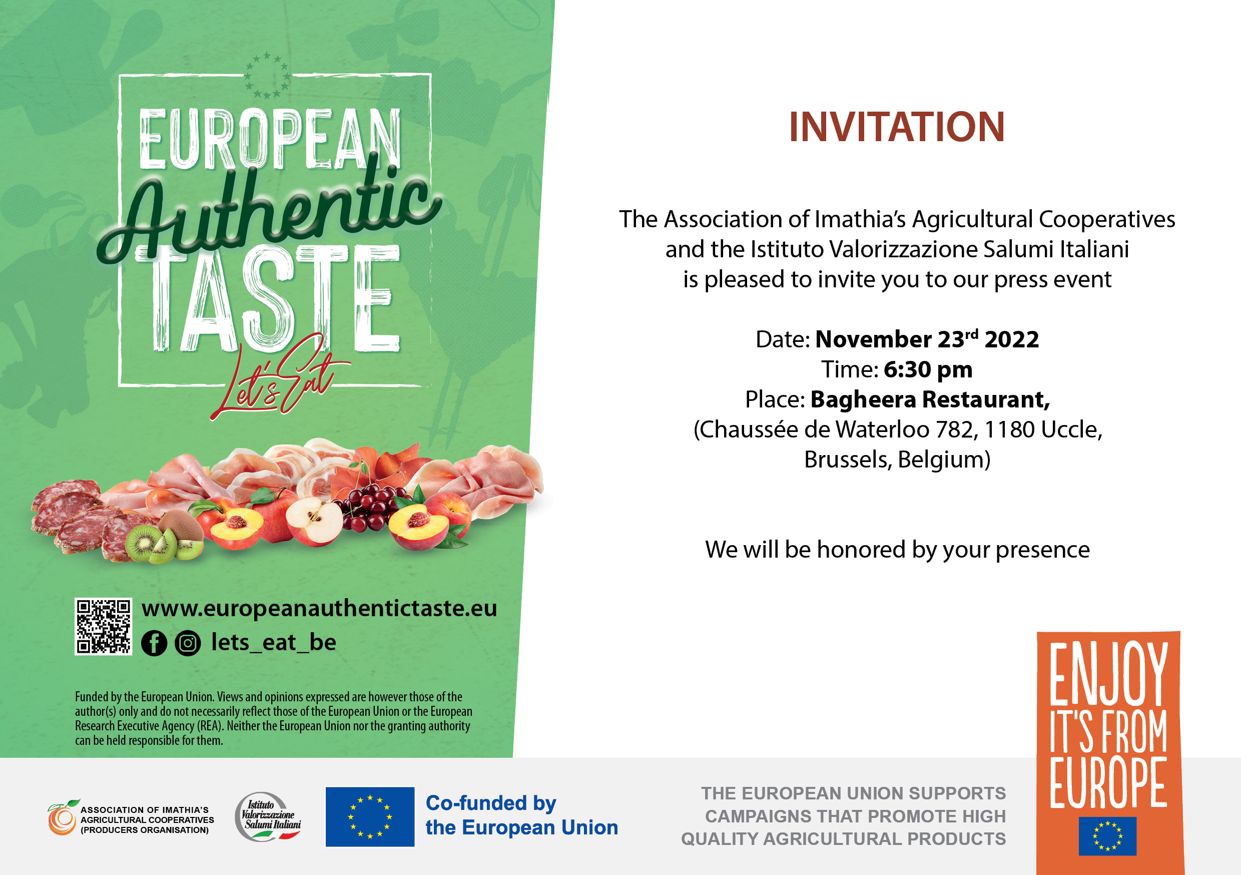On Wednesday 23 November, IVSI - Istituto Valorizzazione Salumi Italiani and the Association of Agricultural Cooperatives of Imathia will promote deli meats and fruit at the Bagheera Reastaurant in Brussels in an exclusive press event with the LET'S EAT -...
