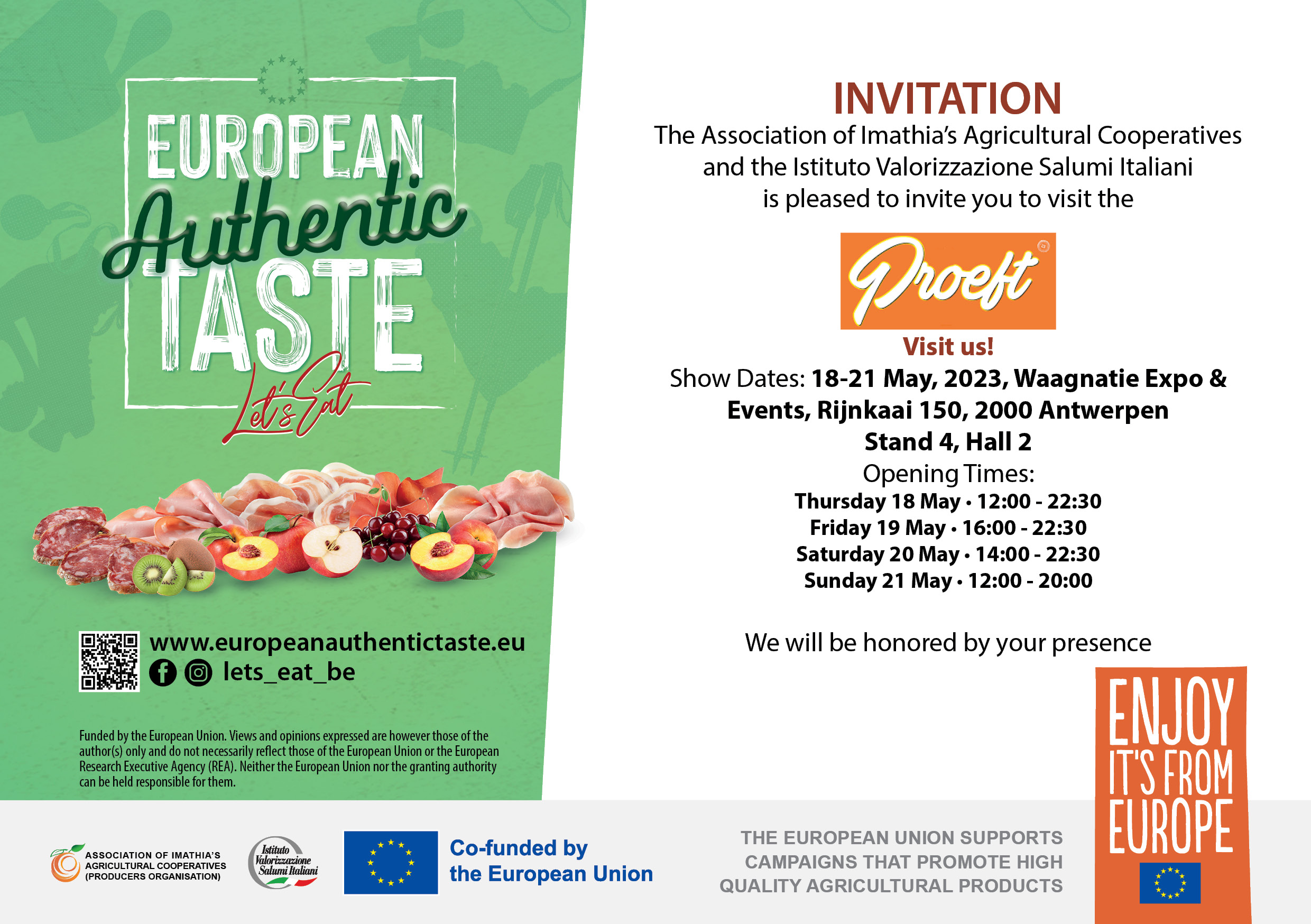 From 18-21 May you will find us in Antwerpen at Proeft! As part of the European promotional campaign ‘LET’S EAT – European Authentic Taste’, the Imathia Association of Agricultural Cooperatives and the Istituto Valorizzazione Salumi Italiani have the pleasure of...