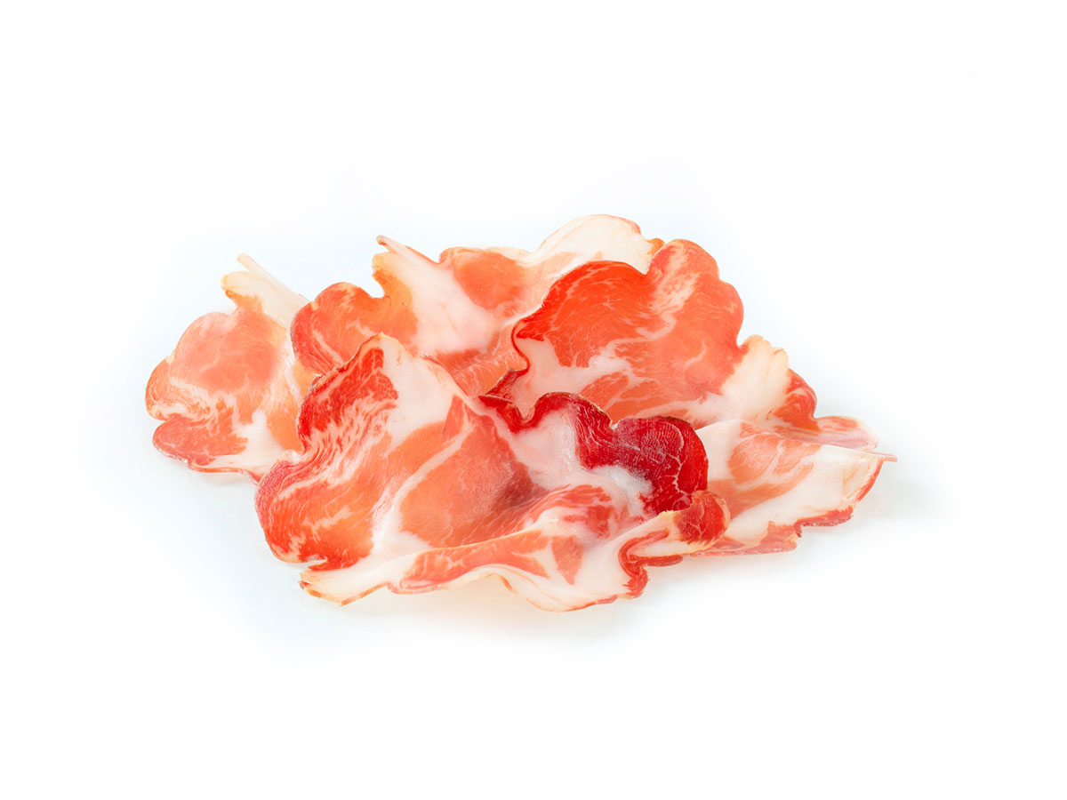 It is prepared using the muscles of the hog’s neck, with a production process in many ways similar to that of prosciutto crudo (raw ham).