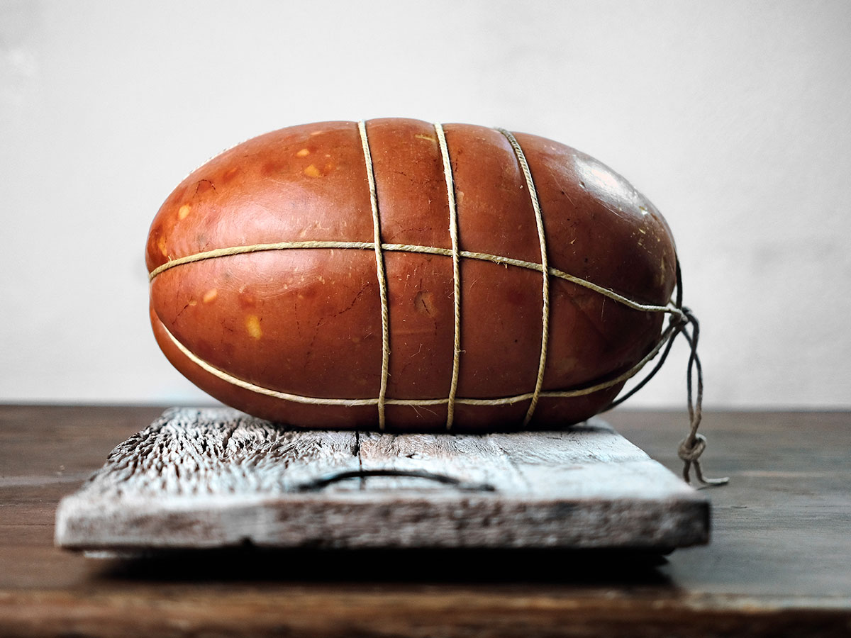 Mortadella has a typical cylindrical shape.