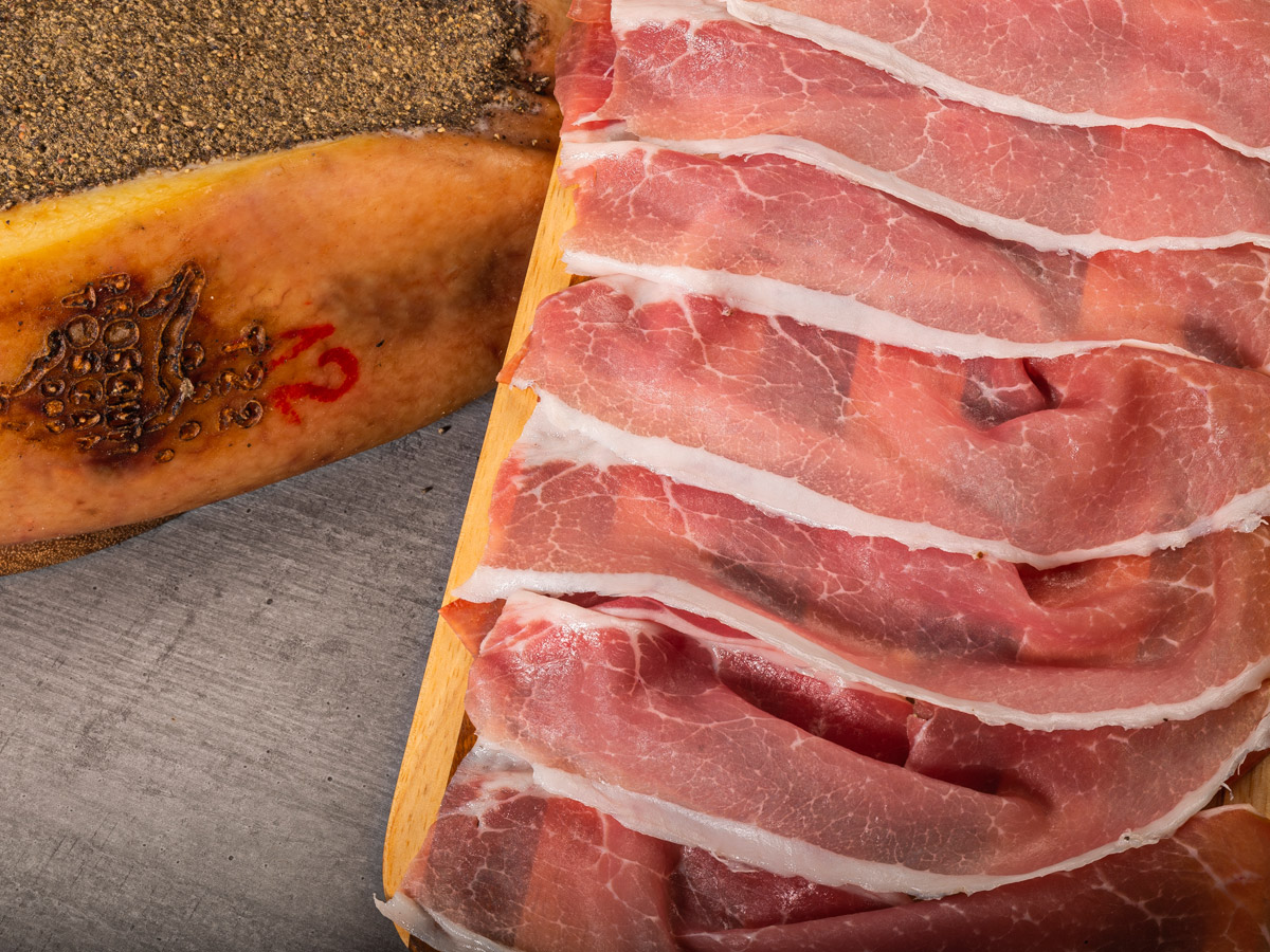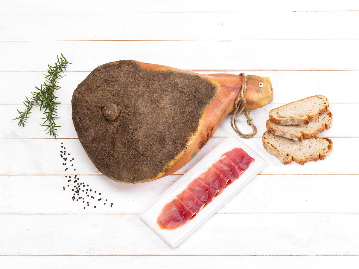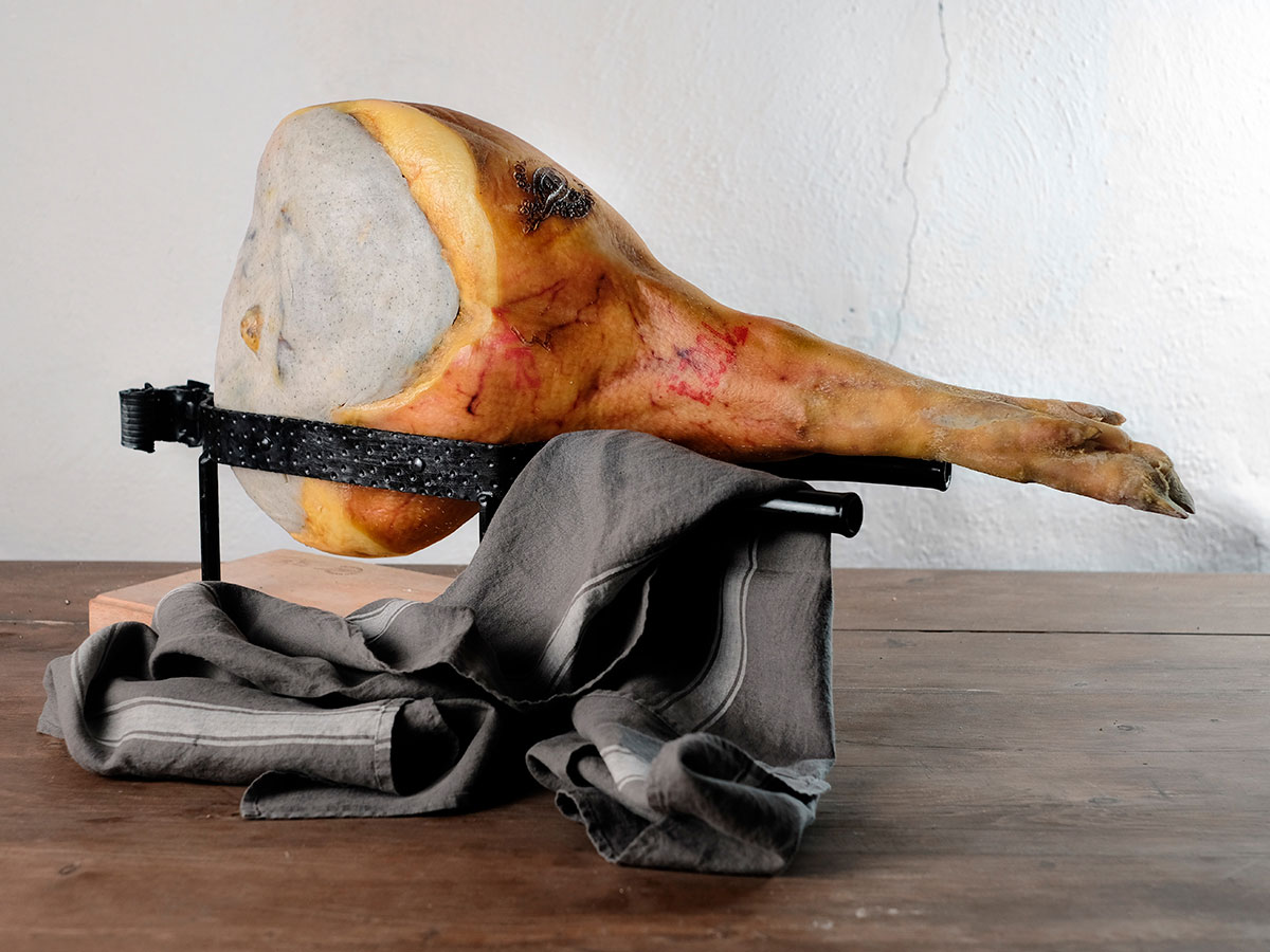 The Prosciutto Crudo (raw ham) is a seasoned product obtained from selected pork thighs, coming from animals weighing between 160 and 180 kg (the so-called “heavy pigs”).