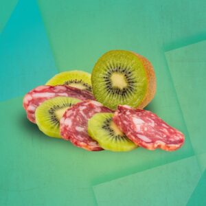- Abbinamenti scientifici: integrare una quantità adeguata di proteine – derivate per esempio dai salumi – e di fibra asssunta grazie alla frutta può aiutare quindi a mantenere la sazietà e a ridurre il consumo di alimenti ad alto contenuto calorico. L’abbinamento di salumi e frutta, come la Bresaola con le arance può offrire altre sinergie nutrizionali interessanti. Ad esempio, la vitamina C presente nella frutta può migliorare l’assorbimento del ferro presente nei salumi, poiché la vitamina C aiuta a convertire il ferro non eme in una forma più facilmente assorbibile dall’organismo. Oppure salame e kiwi dove le fibre presenti nella frutta possono aiutare a limitare l’assorbimento dei grassi derivati dai salumi, contribuendo alla regolarità intestinale.
