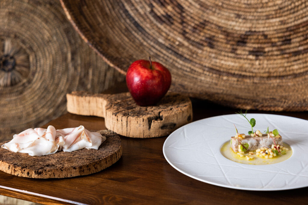 MAIALINO SARDO, IL SUO LARDO E VINAIGRETTE ALLA MELA