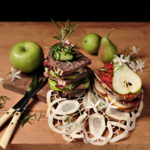 Partendo dal classico Club Sandwich, Maria Teresa Di Marco ha realizzato una doppia ricetta estiva in grado di tributare ed esaltare a meglio le qualità delle eccellenze della nostra Italia. Abbiamo così il club sandwich altoatesino e calabrese: due panini che celebrano la ricchezza gastronomica del nostro paese, da nord a sud, dallo speck alla ‘nduja, con un piccolo tocco fresco e insolito regalato dalle mele e dalle pere. Frutta e salumi, con il loro mix bilanciato di vitamine (fra le quali A, C e B), proteine e Sali minerali come potassio e magnesi ci garantiscono infatti un corretto apporto nutritivo senza lasciarci sconfiggere dalla calura.
